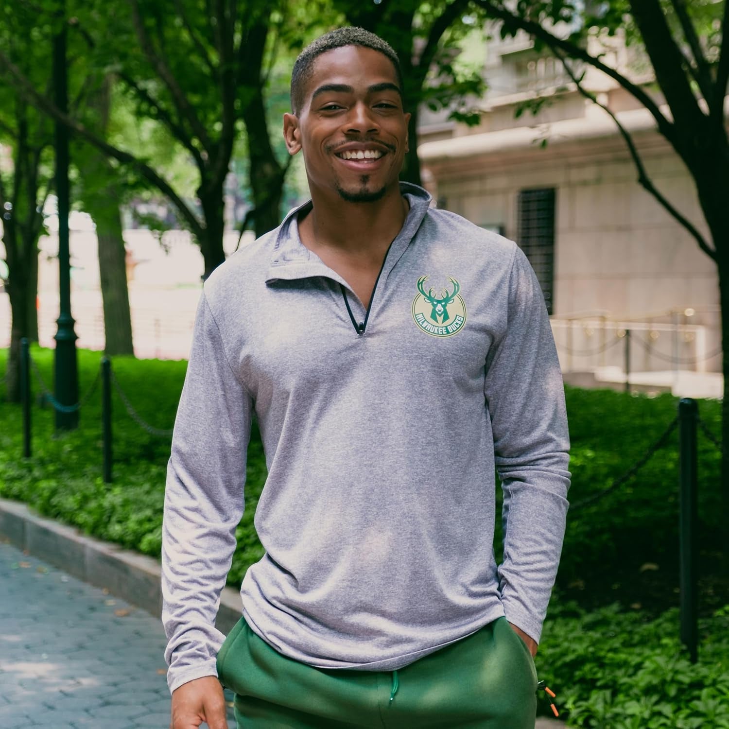 Men'S NBA Quarter Zip Long Sleeve Pullover T-Shirt - Heather Charcoal / Philadelphia 76Ers / Small is backordered and will ship as soon as it is back in stock.