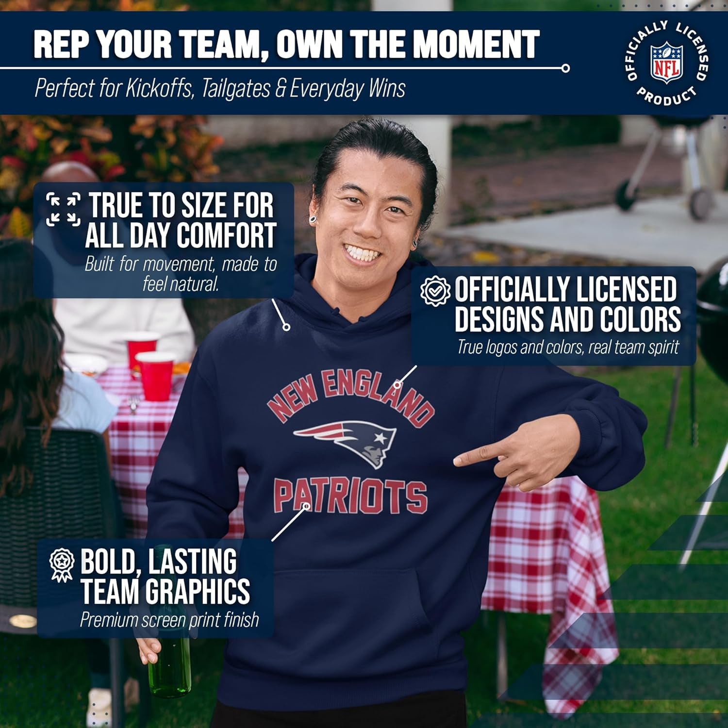 NFL Adult Gameday Hooded Sweatshirt - Poly Fleece Cotton Blend - Stay Warm and Represent Your Team in Style