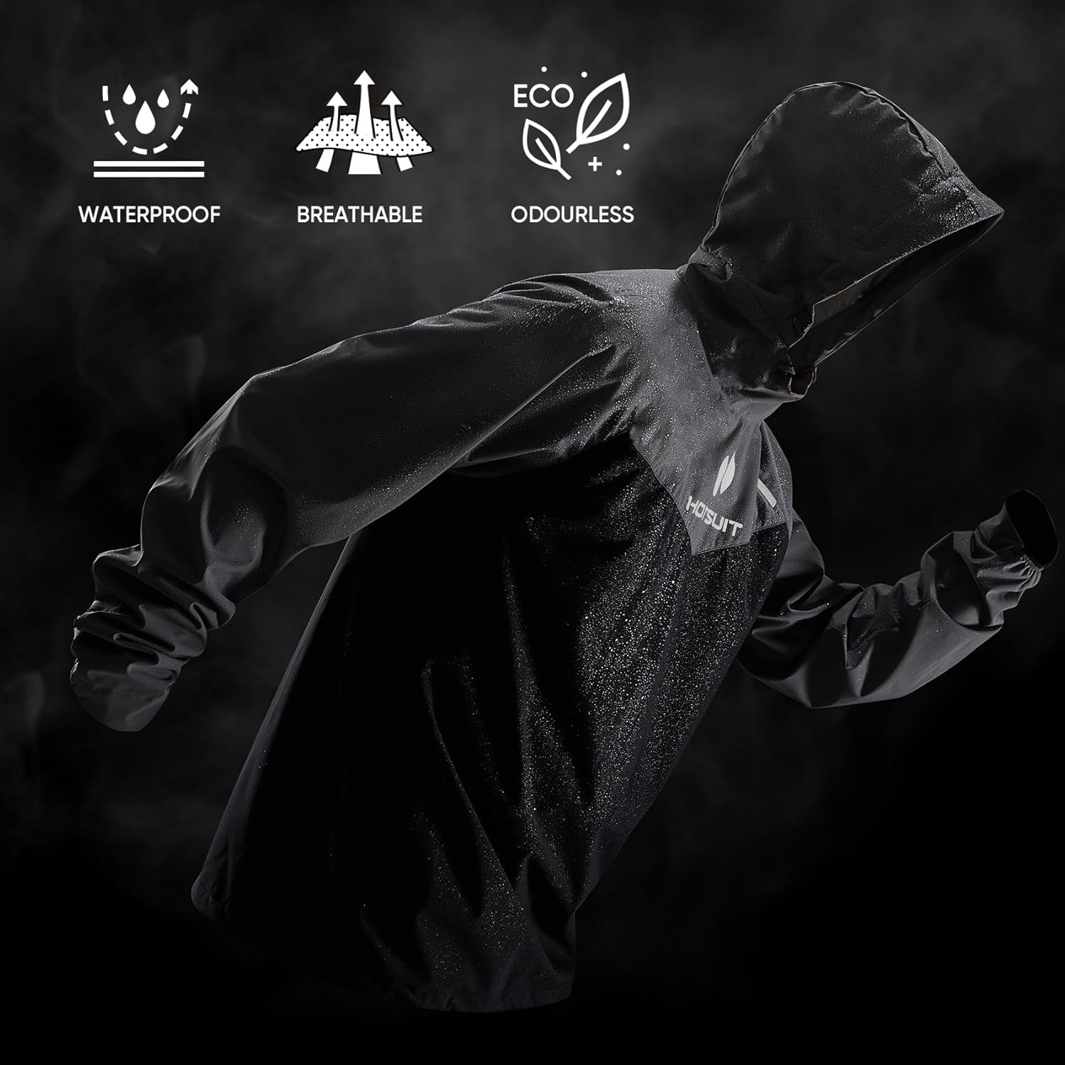 HOTSUIT Sauna Suit Men Jacket Pant Gym Workout Sweat Suits. HOTSUIT sauna suit has been scientifically proven can be widely used to body shape control and effective lose water weight. HOTSUIT sauna suit uses our own technology fabric ""nano-sliverN9000"" it's independently research and develop. It produces and retains body heat and moisture within the garment. It sweat more when compared to similar conditions with other common sauna suit. Through the special fabric, the heat will assemble fast and cause the sweat quickly, sweat gland can perspire rapidly. It is designed to cause sweat profusely for an effective body shaping and water weight reduce. HOTSUIT sauna suit design in fashionable element, it is different from other brand's traditional sauna suit. Waterproof zipper pockets designed on both sides of the pants. Virtual pockets on the upper clothes. The hood incorporates an elastic binding. Drawstring for the pants to best suit a wide range of body sizes. Light-reflecting LOGO placed on left side sleeve. The suit is suitable for a variety of physical activities. Including boxing, weightlifting, yoga, and fitness training. It promotes rapid perspiration, transforming excess body fat into heat. Our Sauna suit made of smooth and unique materials, more breathable, more comfortable,compare with most of other sauna suit. HOTSUIT sauna suit can increase sport efficiency and protect your skin at the same time.