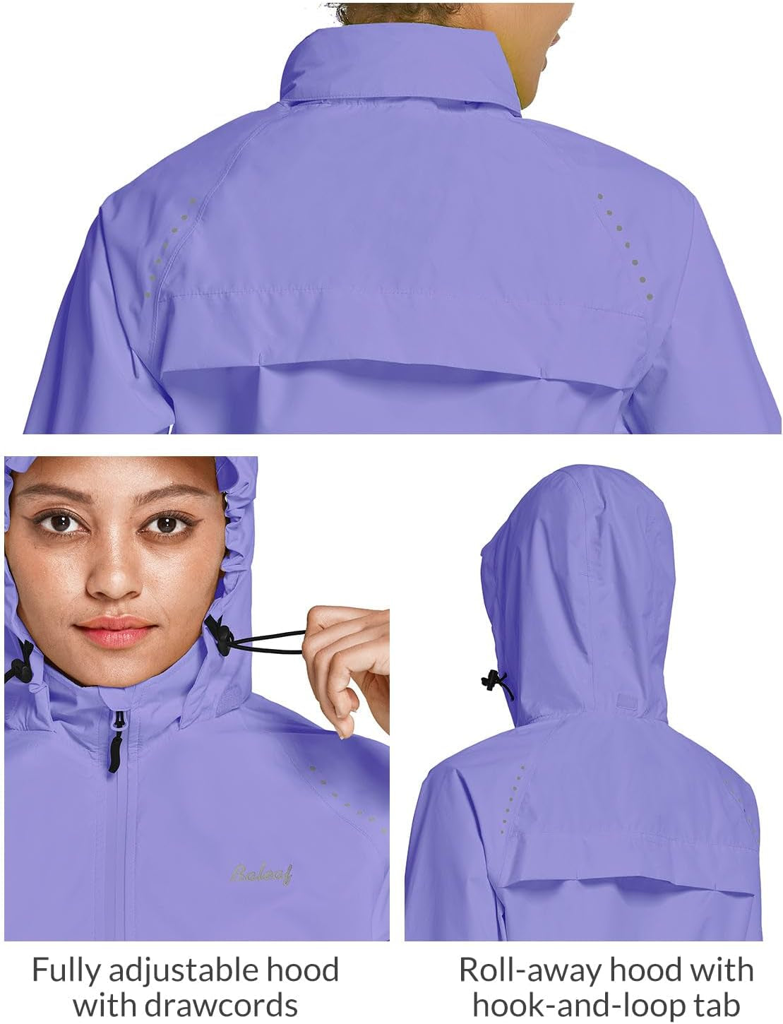 Women'S Rain Jackets Waterproof Windbreaker Packable Running Lightweight Cycling Jacket Reflective Hooded