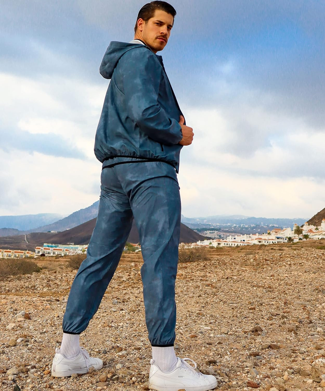 Men'S Sauna Suit 2-Piece Performance Jacket and Pants Set for Weight Loss Workout Boxing - Blue Gray / Small is backordered and will ship as soon as it is back in stock.