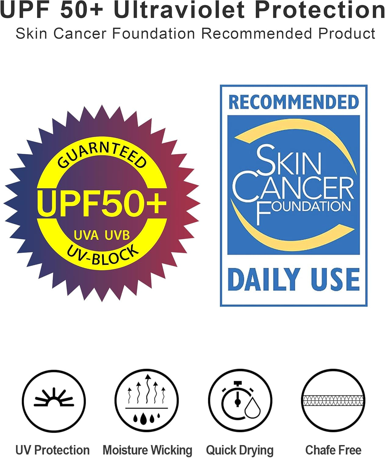UPF 50+ fabric with UV filtration rate > 97.5%, provide excellent protection against harmful ultraviolet rays, and the soft, breathable material feels amazing next to your skin while staying light and cool to the touch, great for a day of water sports, fishing, hiking, traveling, running, workout.