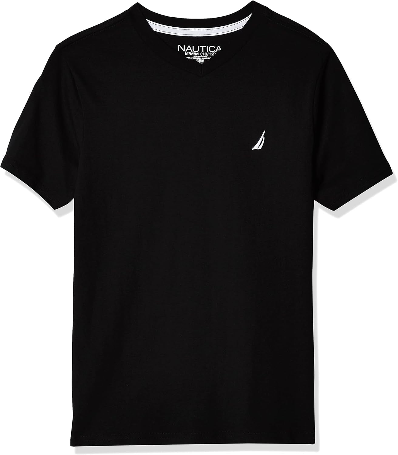 Boys' Short Sleeve Solid V-Neck T-Shirt, Soft, Comfortable, Relaxed Fit