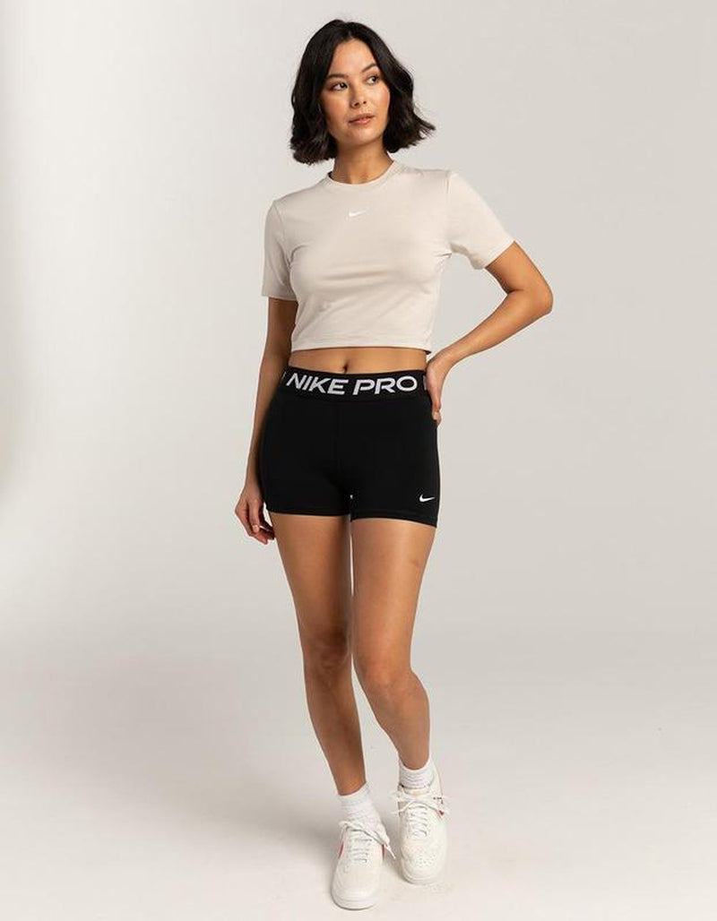 Nike Pro Compression Shorts. The Nike Pro Shorts are made with stretchy, sleek and supportive fabric that wicks sweat to help you stay dry and comfortable during your workout. Nike Dri-FIT technology helps you stay dry, comfortable and focused. A wide, mid-rise elastic waistband feels supportive around your core. Tight fit for a body-hugging feel. Inseam: 3". 83% Polyester/17% spandex. Machine wash. Imported. | NIKE Pro Womens Compression Shorts