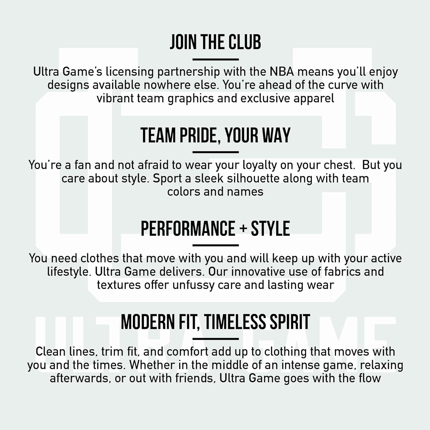 Ultra Game partners with the major sports leagues and franchises to bring you officially licensed gear at down-to-earth prices. If you like to wear your passion in public, Ultra Game's got you covered. Whether it's streetwear, loungewear, or true workout gear, Ultra Game is your number one source for highly fashionable team apparel. Why buy Ultra Game brand products? 100% Authentic - Ultra Game manufactures officially licensed apparel for the NBA and NFL. Best In Class Apparel - We focus on manufacturing the highest quality apparel at affordable prices. Highly Fashionable - We are constantly updating our styles with the latest fashion trends. Satisfaction - We will work with you to resolve all issues until you are completely satisfied.